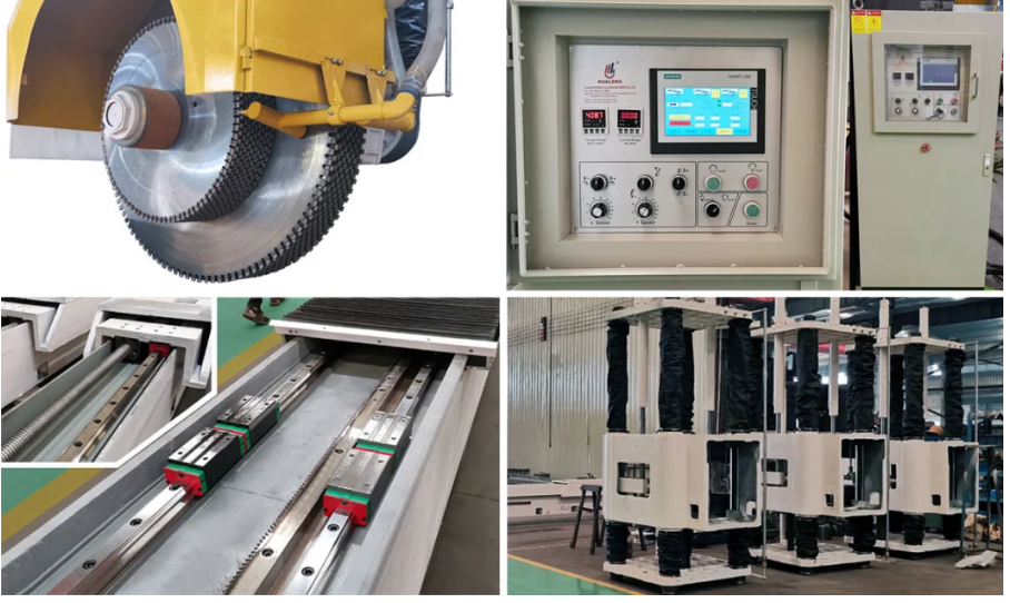 龙门多片组合锯 : 采用金刚石工具和高速切割技术,适用于高效切割各种厚度的石材板材(厚度如17毫米,20毫米,30mm等)。